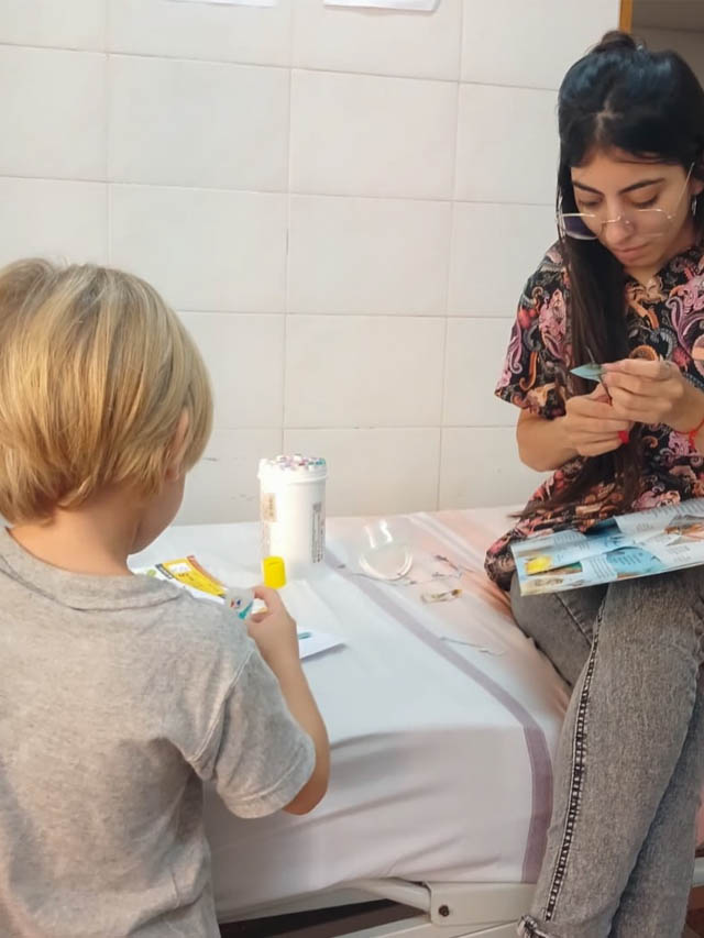 La actividad marcó el inicio formal de este programa institucional, impulsado por el Hogar de Día de Iguazú, que propone el desarrollo de acciones de arte terapia en el área de pediatría. Durante la jornada, el equipo llevó adelante actividades orientadas al acompañamiento y la contención emocional de niños y niñas internados.